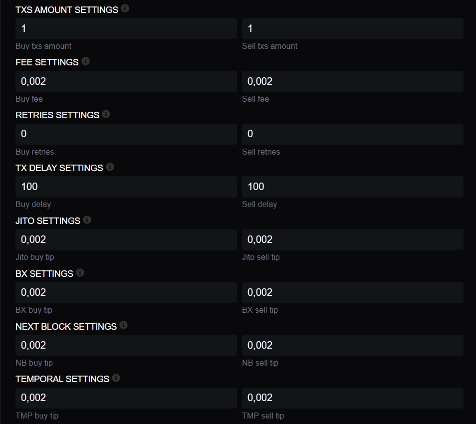 IT'S FORBIDDEN TO USE SUCH SETUP FOR SPAMMING! 1 BUY TX IS ENOUGH!