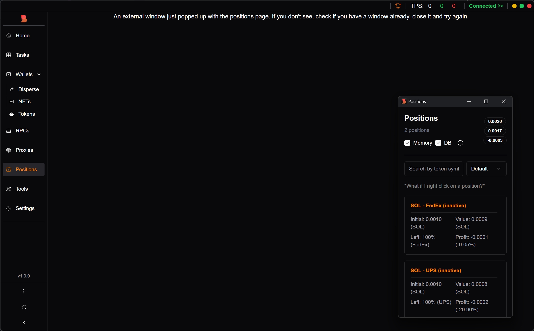After navigating to Positions a pop-up window should be visible. It has the same functionality as BLOOD QT EXTENSION.