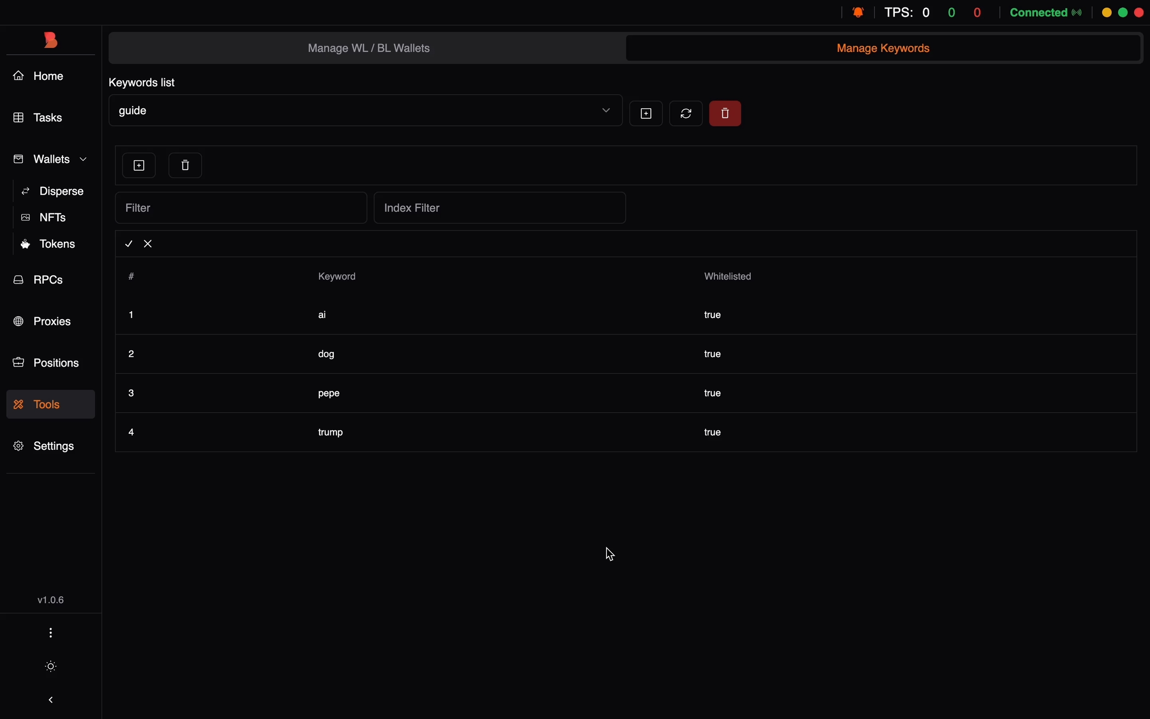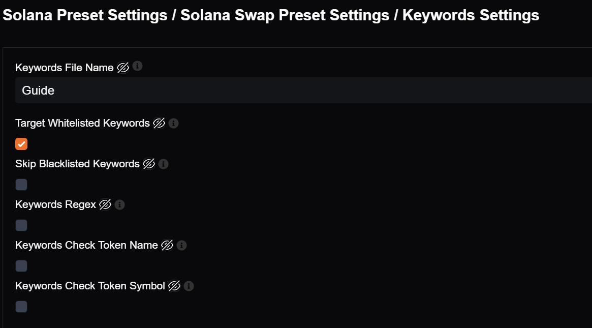 Make sure to fill WALLET FILE NAME before turning on skip blacklist/target whitelisted keywords!